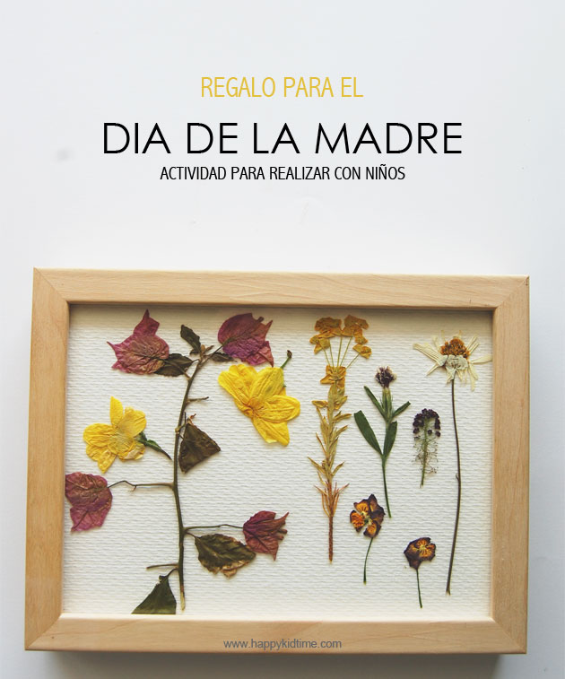 Es una manualidad para el Día de la Madre muy sencilla de realizar y completa, porque implica varios días de trabajo. Hay que dedicar un día en hacer una excursión buscando flores, cuidarlas varios días hasta que se sequen, y lo que más les gusta, ver su trabajo finalizado.